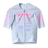 Aerodynamic efficiency comes from AAARTERO™ Flyte, MAAP’s proprietary ultra-light, WorldTour-developed fabric, paired with air-channelled sleeves optimised over 40 km/h to reduce drag and flow separation. Hydrophobic fibres accelerate moisture evaporation for more consistent temperature control, while aero-optimised raw-cut sleeves with integrated silicone grippers keep the fit stable under pressure. An ergonomic neckline, shielded zip, and bonded three-pocket system complete the jersey with a clean, friction-free finish and reduced bulk.